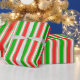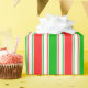 This Christmas and holidays inspired design features a red, white, and green coloured stripes pattern. It might be fun to use wrapping paper like this when wrapping gifts being given in celebration of a birthday, a wedding, an anniversary, or some other event.