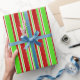 Fun Green, White, Red Christmas Style Lines Wrapping Paper