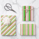 These festive, fun wrapping paper sheets designs feature Christmas and holidays inspired green, white, and red coloured stripes patterns. It might be fun to use wrapping paper sheets like these when preparing gifts being given to celebrate Christmas.