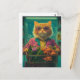 AI generated art of an adorable ginger kitty wearing sunglasses and grocery shopping for veggies and seafood wearing a colourful polka dot jacket