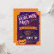 Fun, halloween theme bachelorette party invitation. Features orange jack o' lantern and witch shoes with green, orange, and purple striped socks on orange background. Personalise this cute, invite with your personal information. Great invite for October Halloween theme bachelorette parties.