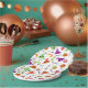 Fun round Halloween paper plates with candies, pumpkins and witches' hats in orange, green and purple on a white background. This paper plate would be great for a Halloween themed birthday party or Halloween party costume party.