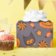Super cute halloween pattern. In this illustration you can see pumpkins, spiders, owls, stars and candy. The pattern design is on purple polka dot background.