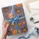 Fun Halloween Pumpkins Pattern Purple Background Wrapping Paper