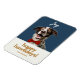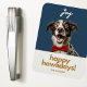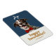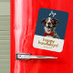 Modern, festive and fun. This christmas howliday flexible magnet features a joyful dog with a red bowtie, a combination of contemporary fonts and custom name text. The front background colour is a chic dark blue and the back of the card has an optional text box if you prefer your message printed. Tip: leave the text box empty if you prefer a blank card.