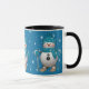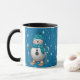 A teal & dark blue snowy star background with a skiing snowman design to match many other fun holiday party products