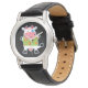 This cute novelty watch features an image of a cartoon pink nosed cow wearing a green and orange flower print shirt. The image is placed on a dramatic black background. Fun, and kind of crazy! *This design uses artwork owned by Encore Software, Inc., which grants use to its licensors. All rights reserved.