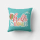Create a custom-made throw pillow for your home décor. Fun Hello Summer Ocean Beach Theme Blue Throw Pillow. Throw pillows can add a decorative touch to any room. Available in other shapes and sizes.