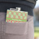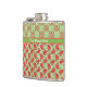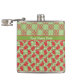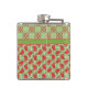 A fun Hip Flask to personalize, with two country-style, mix'n'match patterns of cute red dragons on a green and white check gingham background.