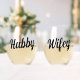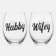 Fun Hubby + Wifey Script Wedding Newlyweds Stemless Wine Glass