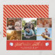 Funny Holiday card in modern script typography reading "just rollin' with it" surrounded by rolls of sparkly toilet paper. Space for 5 of your favourite family photos, names, and year. Celebrate the Holidays a slightly different way this time with this hilarious unique Christmas design. This is the retro candy stripe version.