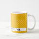 This design features a fun golden yellow background with white polka dots. The "I CANNOT LIE. I. LOVE. SWEATER. WEATHER." typography along top and bottom of the mug with a green sweater.