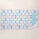 Cute beach towel for a girl with pink, purple, yellow & turquoise blue sunglasses set on a white background. Easy to personalise with your name!