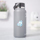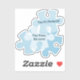 The Fun Jigsaw Puzzle Blue Birthday Motto Favor Sticker - This puzzle sticker features four overlapping blue jigsaw pieces. The center one shows a text placeholder with the motivational text: "Tiny Piece, Big Love!" and a second text with: You Fit Perfectly!" . All elements are customizable by color.