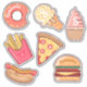 These die-cut stickers are perfect for junk food lovers. Our junk food sticker set features seven our our own hand-drawn cartoon style junk food items including a burger, fries, doughnut, ice cream, hotdog, ice cream cone, and a slice of pizza. The stickers are personalised with name and monogram for a unique personalised look. These fun cartoon style junk food stickers are perfect for decorating and personalised your stuff, scrapbooking and more! All artwork illustrations hand-drawn by Moodthology.