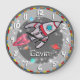 Colourful kids graphic wall clock designed by exclusively by Sarah Trett. Customise with the name of your choice up to 5-6 letters, this example reads Gavin. Would be a great personalised addition to your child's space themed bedroom.