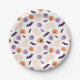 This design features a playful and colourful Halloween pattern with a minimalist design. The pattern includes simple, rounded shapes of jack-o'-lanterns, ghosts, skulls, and bats, all scattered across a white background. The colour palette is soft yet vibrant, with pumpkins in shades of orange, ghosts in pale peach, skulls in lavender, and bats in deep purple. Each element has a cute and friendly expression, making the pattern fun and lighthearted, perfect for Halloween decorations or kids' party themes. The overall design is cheerful and festive, capturing the whimsical side of Halloween.