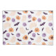 This design features a playful and colourful Halloween pattern with a minimalist design. The pattern includes simple, rounded shapes of jack-o'-lanterns, ghosts, skulls, and bats, all scattered across a white background. The colour palette is soft yet vibrant, with pumpkins in shades of orange, ghosts in pale peach, skulls in lavender, and bats in deep purple. Each element has a cute and friendly expression, making the pattern fun and lighthearted, perfect for Halloween decorations or kids' party themes. The overall design is cheerful and festive, capturing the whimsical side of Halloween.