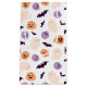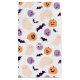 This design features a playful and colourful Halloween pattern with a minimalist design. The pattern includes simple, rounded shapes of jack-o'-lanterns, ghosts, skulls, and bats, all scattered across a white background. The colour palette is soft yet vibrant, with pumpkins in shades of orange, ghosts in pale peach, skulls in lavender, and bats in deep purple. Each element has a cute and friendly expression, making the pattern fun and lighthearted, perfect for Halloween decorations or kids' party themes. The overall design is cheerful and festive, capturing the whimsical side of Halloween.