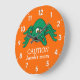 Graphic art wall clock featuring cheeky spider and fly. Great to add some humour in a kids bedroom. With this fun beware named boys wall clock in orange and green.