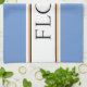 This retro culinary design features FLOUR text inside a wide white centre stripe highlighted with black, yellow, and white racing stripes against soft blue outer stripes. The text can be personalised.
