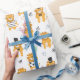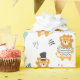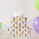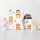 Cute and fun lion pattern design, with some lions in sweaters with stripes or polka-dots, some with black top hat and bow tie, and some holding a balloon. Solid white background.