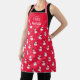 Fun red family matching apron featuring a lovely pattern with cute snowmen with red and light blue scarfs and red and black hats, decorated with snowflakes. The caption on the upper part, decorated with stylised whisk, chef hat, and rolling pin, reads Chef in white lettering and is customisable with your name.