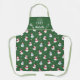 Fun green family matching apron featuring a lovely pattern with cute snowmen with red and light blue scarfs and red and black hats, decorated with snowflakes. The caption on the upper part, decorated with stylised whisk, chef hat, and rolling pin, reads Chef in white lettering and is customisable with your name.