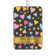 This cheerful, fun and loving air freshener design features a pattern of heart shapes of various sizes and coloured a variety of colours. It also features a custom name or message within a faux gold look banner.