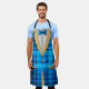 This one-of-a-kind tuxedo with a madras pattern has a very realistic look on this apron, be it for men or women. The pockets and the collar are in a gold glitter colour. The bow tie is in a smaller assorted madras blue colour. The shirt is grey with golden buttons.