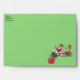 This envelope is green with a fun Santa Claus riding a red and white train with peppermint candy wheels carrying candy canes and letters to Santa. Back flap has Merry Christmas text in bold red. Customise your return address on the front with the template.
