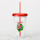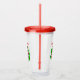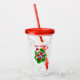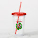 This acrylic drink tumbler with straw and lid has a fun skeleton peeking out from a bright red and green dimensional shape wearing a Santa hat holding Christmas ornaments up to his eyes. Customise the Merry Christmas text with the template on the front and back.