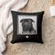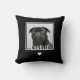 Fun Modern Black White Pug Heart Dog Photo Name Cushion