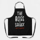 Elevate your kitchen style with our vibrant apron featuring the humourous yet authoritative message, "The Boss of Sauce," reserved exclusively for Mum's territory. The striking contrast of white typography against a black background radiates maternal power and affection. With a minimalist chalk-like design, personalise it with customisable text and signature options for a unique touch. Perfect for empowered mothers and grandmothers, this apron offers a heartfelt expression of love and authority, making it an ideal addition to any culinary adventure.