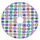 Modern Christmas tree skirt featuring an array of multicolored circles in shades of green, purple, gold, turquoise, blue, and more. Designed by Heard_, © Susan M. Silva .