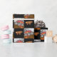 Wrap birthday gifts with excitement using this personalized monster truck wrapping paper! Perfect for kids who love trucks, racing, and adventure. Features a roaring red monster truck with flames and a checkered flag. Fully customizable with child's name and age. Ideal for wrapping presents for truck-themed birthday celebrations that capture monster truck excitement! Coordinates perfectly with matching invitations and party supplies.