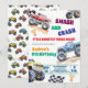 Fun Monster Trucks 9th Birthday Party Invitation