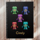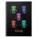 Fun Multicolor Robots with Child's Name on Black Notebook