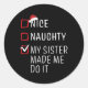 Fun Naughty Nice Christmas Family Pajama Men Women Classic Round Sticker