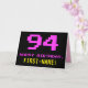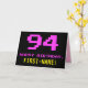 Fun, Nerdy, Geeky, Pink, 8-Bit Style 94th Birthday Card