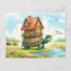 Send a charming announcement with our unique New Address postcard featuring a delightful illustration: a cosy home perched snugly atop a turtle's back, ambling leisurely through a picturesque field by a serene pond. This whimsical image perfectly captures the feeling of moving at your own pace and finding tranquillity in new surroundings.