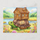 Send a charming announcement with our unique New Address postcard featuring a delightful illustration: a cosy home perched snugly atop a turtle's back, ambling leisurely through a picturesque field by a serene pond. This whimsical image perfectly captures the feeling of moving at your own pace and finding tranquillity in new surroundings.