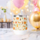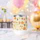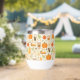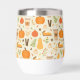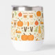 This design showcases a delightful fall-themed pattern filled with cosy autumn elements. The design includes illustrations of pumpkins, slices of pumpkin pie topped with whipped cream, warm fall beverages in to-go cups, and butternut squash. Scattered among these are cinnamon sticks, star anise, sprigs of greenery, autumn leaves, acorns, and small berries, all set against a soft cream background. The pattern exudes a warm and inviting atmosphere, perfect for celebrating the flavours and colours of the autumn season.