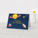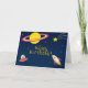 This modern fun outerspace rocket girl greeting Card with a rocket ship and planet on a dark blue star filled sky background is the perfect for any birthday party or special event in style. Personalise with your own special text, and use it for the party or event of your choice. Some Graphics by Prettygrafik design at store etsy.com/shop/Prettygrafikdesign