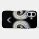 A fun and whimsical owl's face in black and white, featuring eyes and beak.