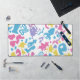 LOVE this desk mat! It's large! It fits across my desk. No need for a small mouse pad now! Color and print are excellent. Quality seems to be excellent too. Delivery was about 3 days sooner than expected. I think this is one of my favorite Zazzle products! Excellent. The color is vibrant and true to what I expected.