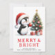 Fun Penguin Merry Bright Modern Minimal Christmas Holiday Card