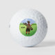 A fun cartoon design featuring a golfer in vintage attire standing in the rough looking towards the green and flag. The golfer is carrying a golf bag with golf clubs. Any initials can be entered to create a unique monogrammed golf gift for the kean golfer or golf fan