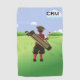 A fun cartoon design featuring a golfer in vintage attire standing in the rough looking towards the green and flag. The golfer is carrying a golf bag with golf clubs. Any name or initials can be entered to create a unique personalised golf gift for the keen golfer or golf fan
