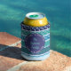 A fun can cooler with an abstract wave and water background. The message, "Welcome To Our Pool...Jump In & Have Fun" on the front. Personalise with name. The back has the message, "The Tan Lines Will Fade, But The Memories Will Last Forever"